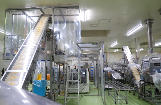 工場内にはマイクロ波乾燥機が設置され、続々と乾燥食品が製造されていく