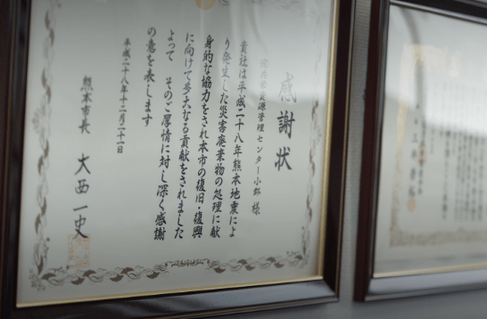 共栄資源管理センター小郡では、このように新型コロナ感染症に対しても、非常に早い段階から策定・運用していたため、事業継続力強化計画(単独型)の認定制度では県内企業の中でも相当早い段階で九州産業局の認定を受けている。