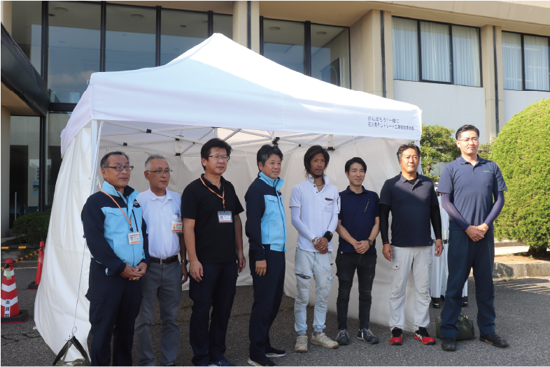 なお石川県テントシート工業組合、そして東海北陸ブロック7県の組合は、復興途上の能登半島の被災地に独自の支援を続けています。
