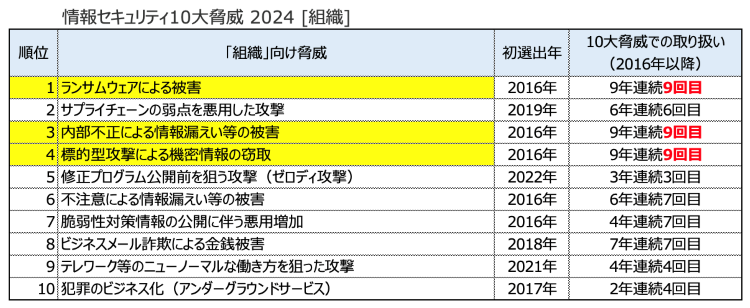 IPAの「セキュリティ10大脅威」の内容は毎年確認しよう〜2024年版の動向