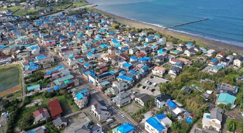 - 台風15号が通過した8日後の9月17日に南房総市富浦町原岡地区を見下ろす。