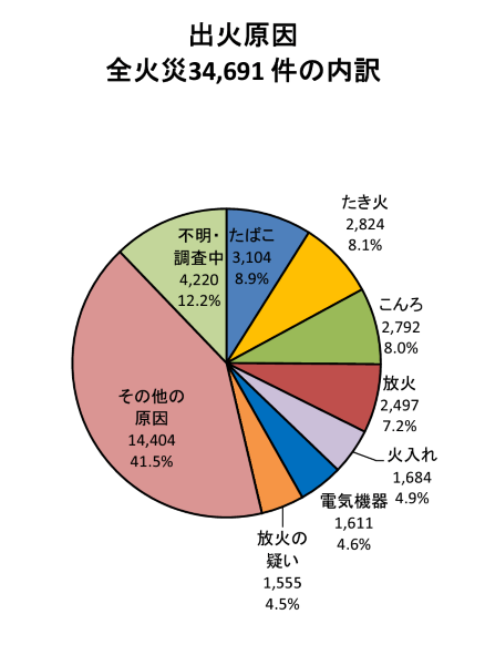 電気機器による火災のほかにも、最近は感染症対策のための飛散防止フィルムやアルコール消毒液を設置している場所が増えているため、そうした可燃性の高いものが近くにあると、火災が発生しやすくなるともいわれています。