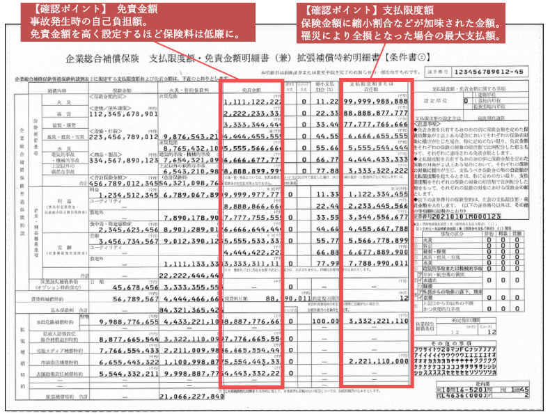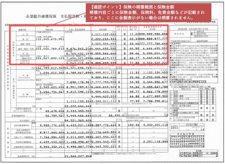 特に、近年の大雨・台風などによる激甚災害への備えとして、水災・風災への補償が対象となっているか、会社で加入している保険の内容を保険証券でご確認しておくことが望ましいです。