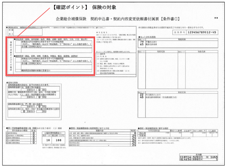 自社にて所有されている財産は、建物のみならず設備什器や製品を含め検討することが大切です。 特に過去の被害例を見ると、建物が全壊するケースだけでなく、建物の被害は軽微でも、設備什器が稼働不能となり事業自体がストップしたり、在庫商品が水没し売り物にならず取引先に納品できなかったりというケースも発生しています。また、屋外設備・装置を補償する商品もあります。