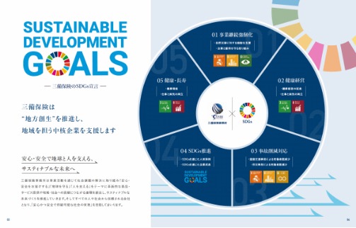 三備保険事務所は、2020年9月に自社の取り組みを紹介するパンフレットを製作した。これによると、---三備保険のSDGs宣言---には下記の5つの項目が明記されている。
