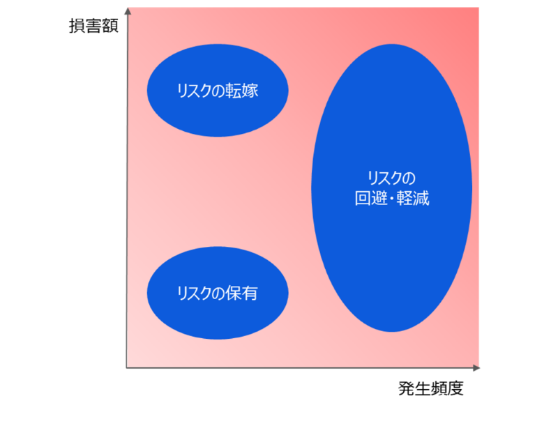 リスクの発生頻度が低く損害額が大きいリスクに対しては、保険によるリスクの転嫁が有効とされています。リスクの発生頻度が低く、損害額も小さいリスクに対しては保有が合理的な手段とされています。