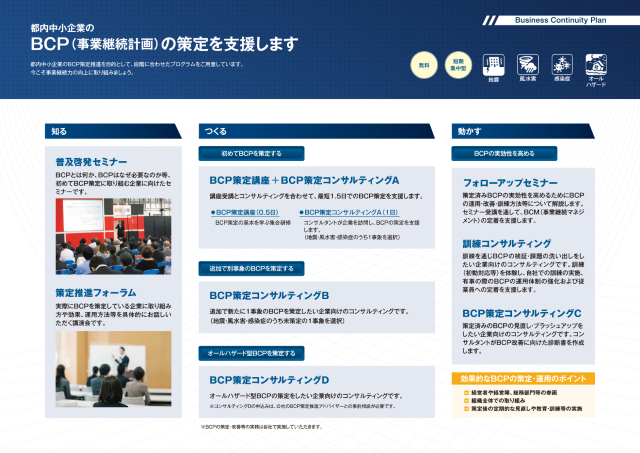 東京都の充実したBCP策定支援メニュー(セミナー、策定講座、コンサルティング)