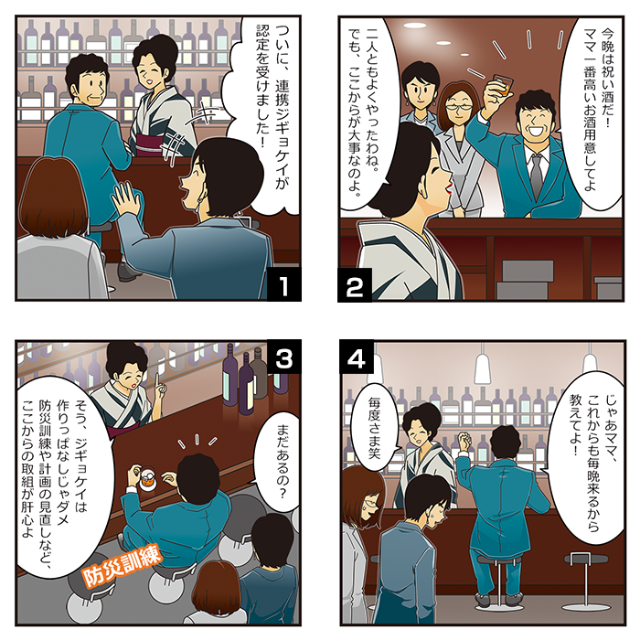 スナックに行ったこともない人間が担当になり、試行錯誤しながら「ジギョケイ」や防災に関することを面白おかしく伝えられればとの想いを込めて作りました。